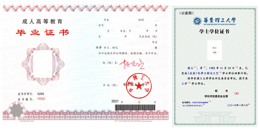 1.学生修读完教学计划规定的学分,成绩合格,颁发国家承认的由教育部电子注册的华东理工大学成人高等教育毕业证书。